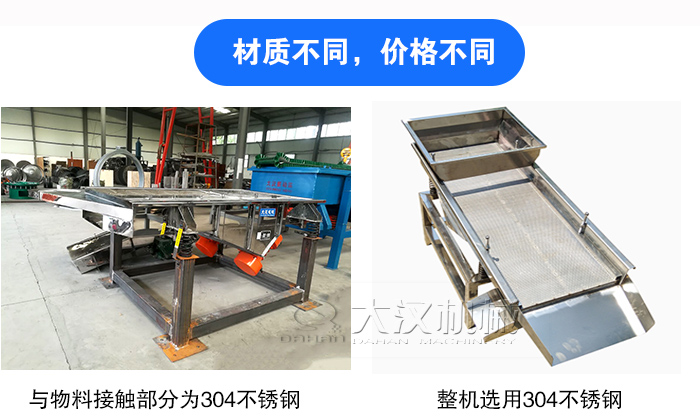 降溫直線篩直線振動篩材質(zhì)主要有碳鋼與不銹鋼兩種:①與物料接觸部分為304不銹鋼材質(zhì),其他部分選用碳鋼材質(zhì);②整機選用304不銹鋼材質(zhì)。不銹鋼材質(zhì)的采購成本比碳鋼材質(zhì)高,所以相對于第種方案,第二種會更加貴些。