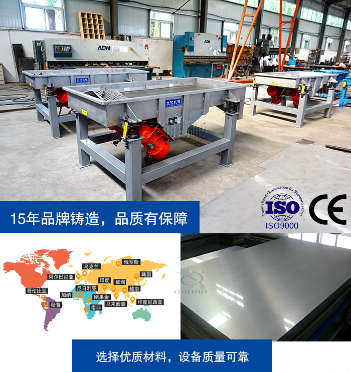 15年的經(jīng)驗積累和技術沉淀,大漢及時實力更強,目前公司包括直線振動篩分機在內的所有設備均與通過ISO9001國際質量體系認證,產(chǎn)品質量好、性能佳、高效能耗低、效果顯著,目前已經(jīng)暢銷俄羅斯、南非、印度、越南、加拿大等60個國家,并贏得了良好口碑。