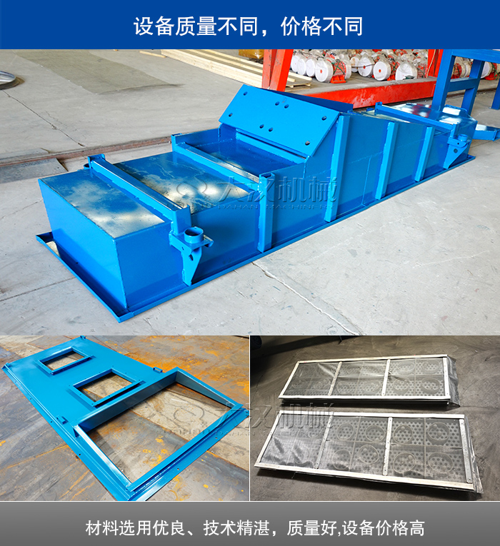 質量好的黃沙直線振動篩價格也會更高些,因為材料選用優良、技術較為精湛,花費的總制造成本也會較高些,在后期使用中,設備的壽命更長、故障少、費用低;反之,劣質設備的購買價格雖便宜,不過后期花費更高,使用效果欠佳。