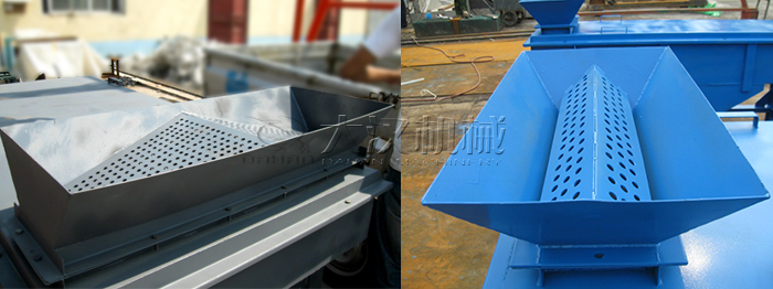 它是在傳統(tǒng)分料器的基礎(chǔ)上改良而成的,即在傳統(tǒng)分料器和進(jìn)料口之間多增加個(gè)或多個(gè)擋板裝置,實(shí)現(xiàn)通過閘門進(jìn)步控制進(jìn)入篩機(jī)的物料量和分布情況的目的,即使再大的投料量也能很好的起到分料作用。