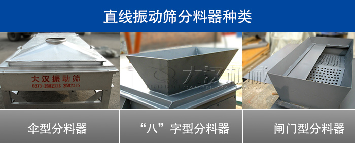 這兩種是分料器的傳統(tǒng)形式,在投料量不是很大、產(chǎn)量要求不高的時(shí)候直線篩出料口多加裝這種分料器,但是旦投料量過大就難以起到預(yù)期的分料作用。