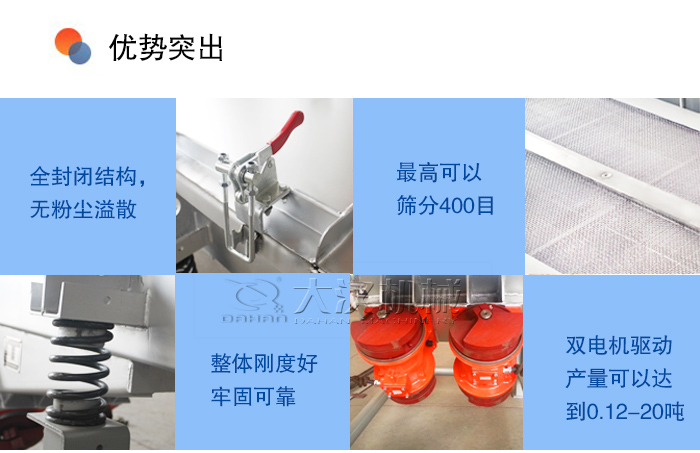 1)高可以篩分400目,篩分效率可以達到96%以上;