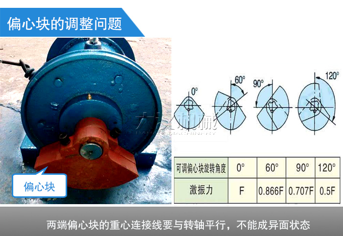 調(diào)整偏心塊時,誤把兩端偏心塊的方向調(diào)反,使振動電機產(chǎn)生個空間扭矩,使振動電機在非正常狀態(tài)下工作,進而引起燒毀。因此調(diào)整偏心塊時,定要注意其對稱性,即兩端偏心塊要兩兩對應,或者說是兩端偏心塊的重心連接線要與轉(zhuǎn)軸平行,不能成異面狀態(tài)。