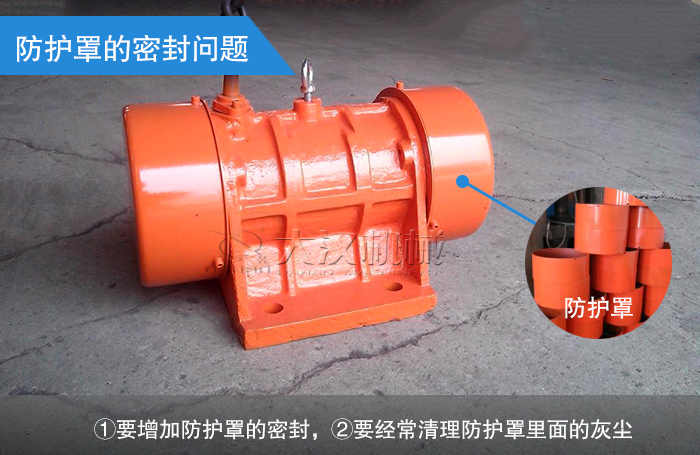 由于振動電機的工作環(huán)境大都非常惡劣、粉塵大,如果防護罩密封不嚴,很容易進灰塵,引起偏心塊的摩擦運轉(zhuǎn),從而燒毀電機。所以在工作環(huán)境惡劣的地方,要增加防護罩的密封,二要經(jīng)常清理防護罩里面的灰塵。