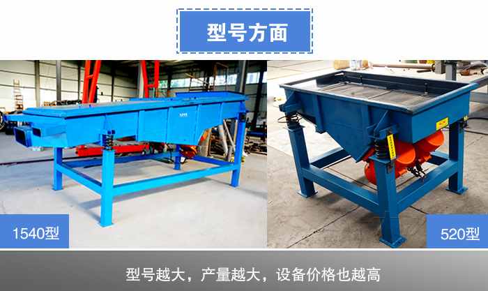 塑料直線振動篩520型到1540型,不同型號的塑料顆粒直線振動篩篩面長度和寬度是不同的,單位時間內(nèi)處理量也不同,型號越大,產(chǎn)量越大,塑料顆粒直線振動篩價格就越貴,所以用戶要結(jié)合自身篩分產(chǎn)量合理選擇型號。